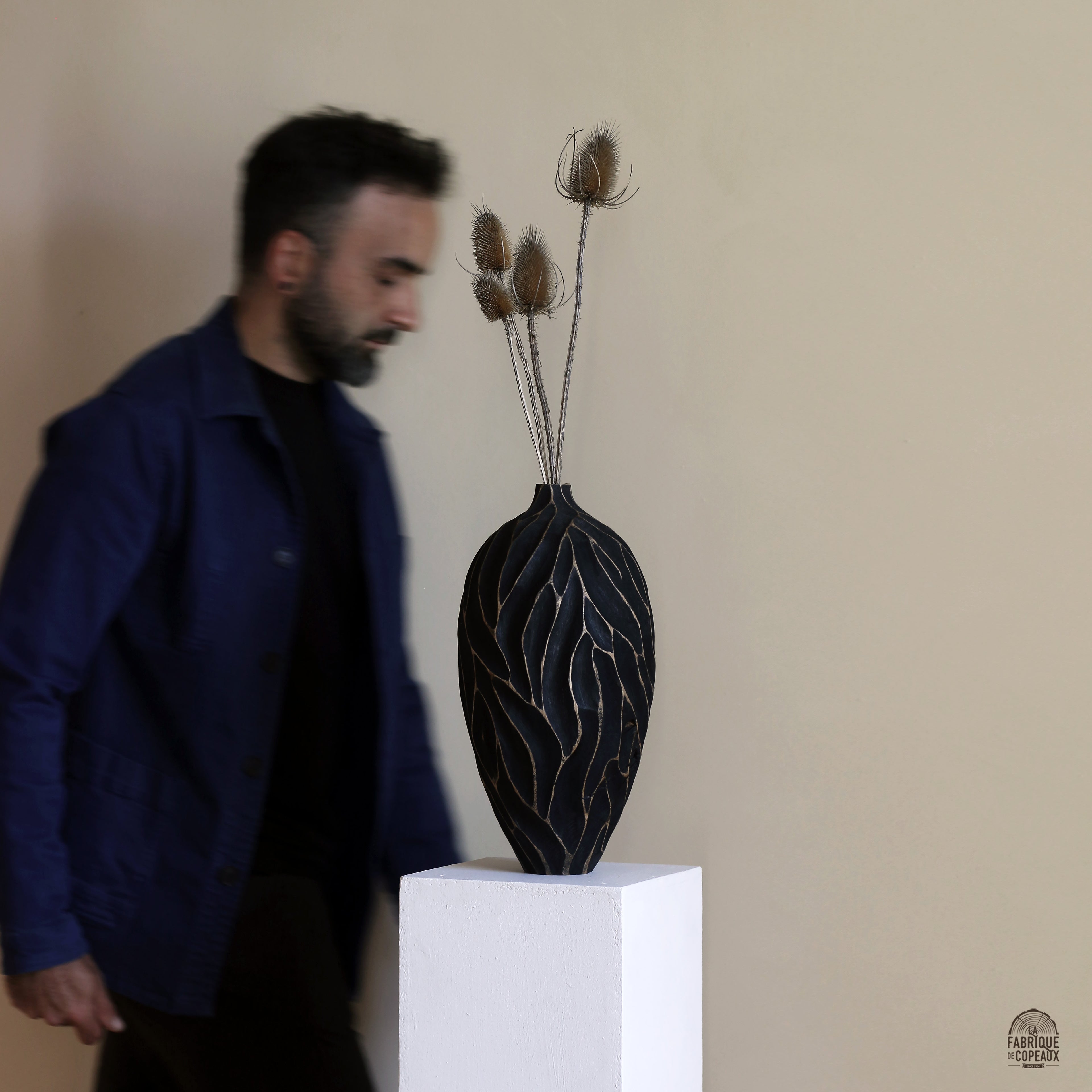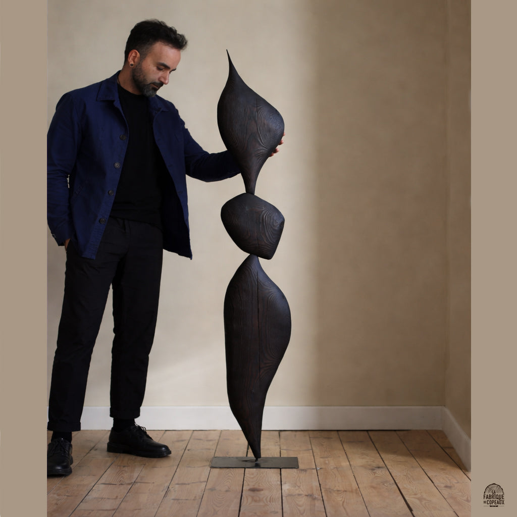 Ces pièces sont des œuvres uniques, elles naissent d’une recherche autour de la matière, du geste et du temps. Tableaux, totems et sculptures composent un travail à la frontière entre artisanat et art.